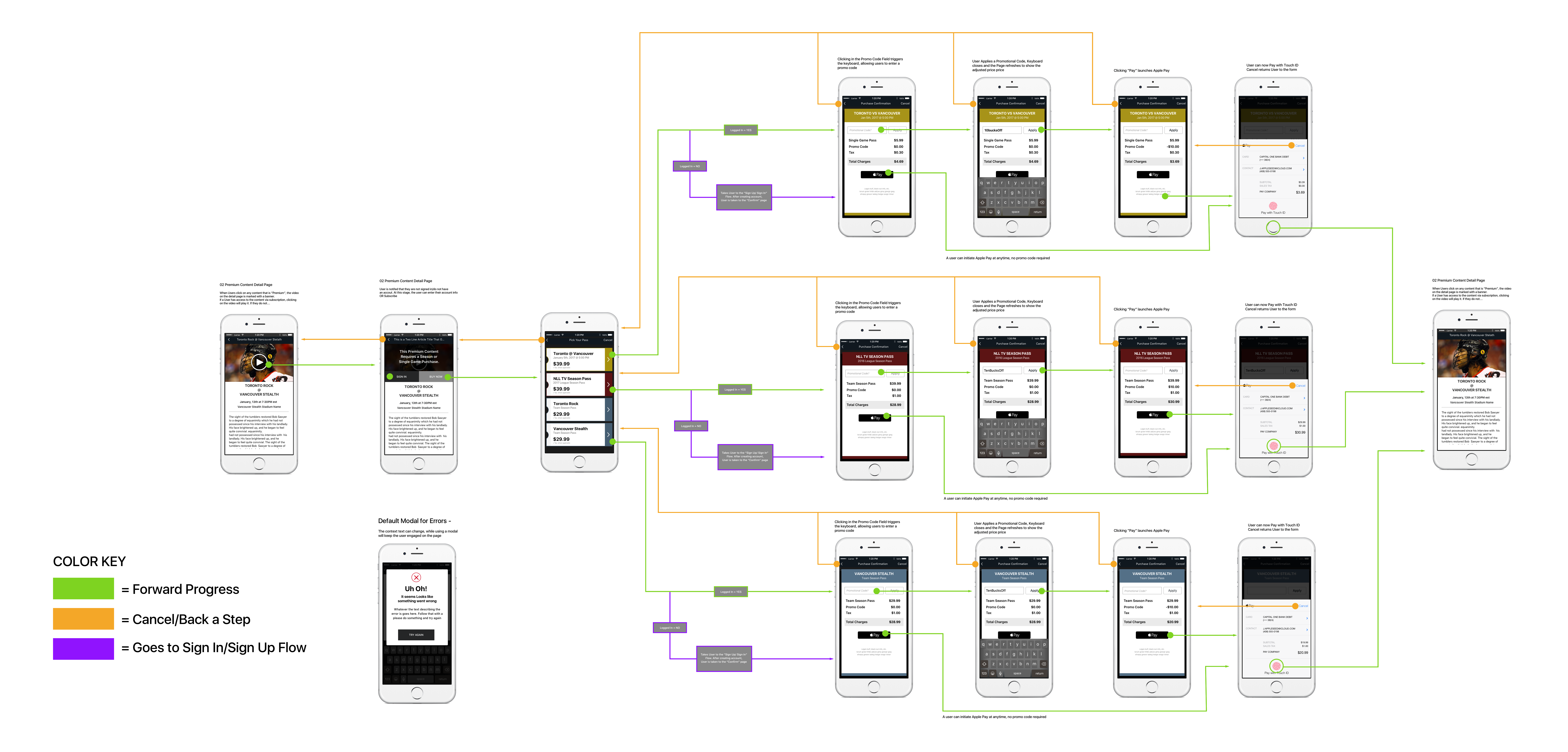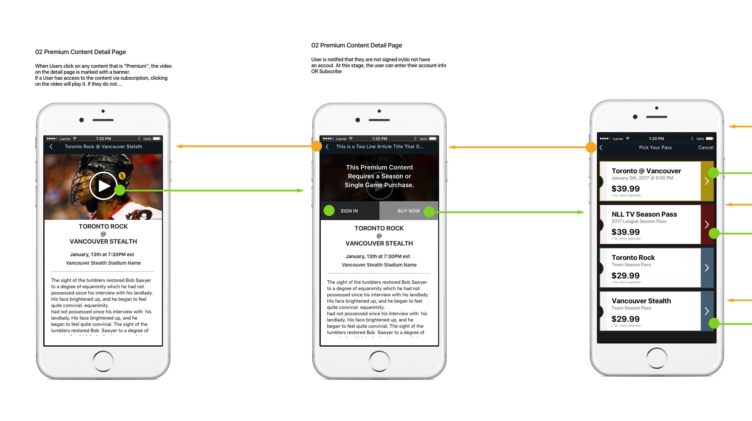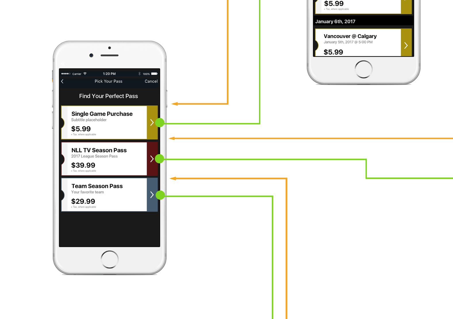 To start with, a little context - The NLL wanted to build an app that encouraged exploration. As a new league, it was determined that they wanted to dangle a fairly large carrot without hassling users to buy until it became necessary. Once they decided to buy, the app had to be simple - the major use cases and personas all fell into the “sports fan first, technical people second” categories.